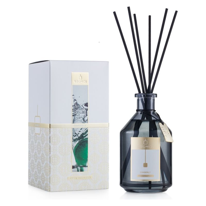 Gingerly - Roomoi è un deodorante per ambiente che combina la vivace energia dello zenzero con note agrumate, speziate e leggermente dolci, creando un'atmosfera fresca, dinamica e accogliente. Ideale per chi cerca una fragranza tonificante ma raffinata, perfetta per spazi in cui si desidera un tocco di vitalità senza rinunciare all'eleganza.